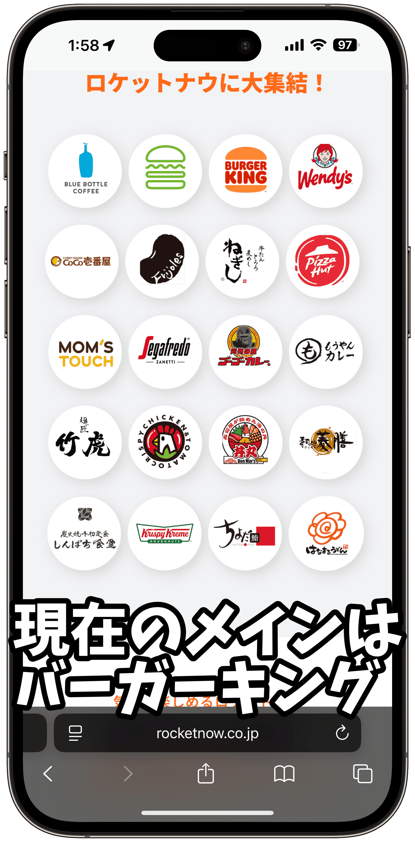 現在ロケットナウの注文の核となっているのはバーガーキング。