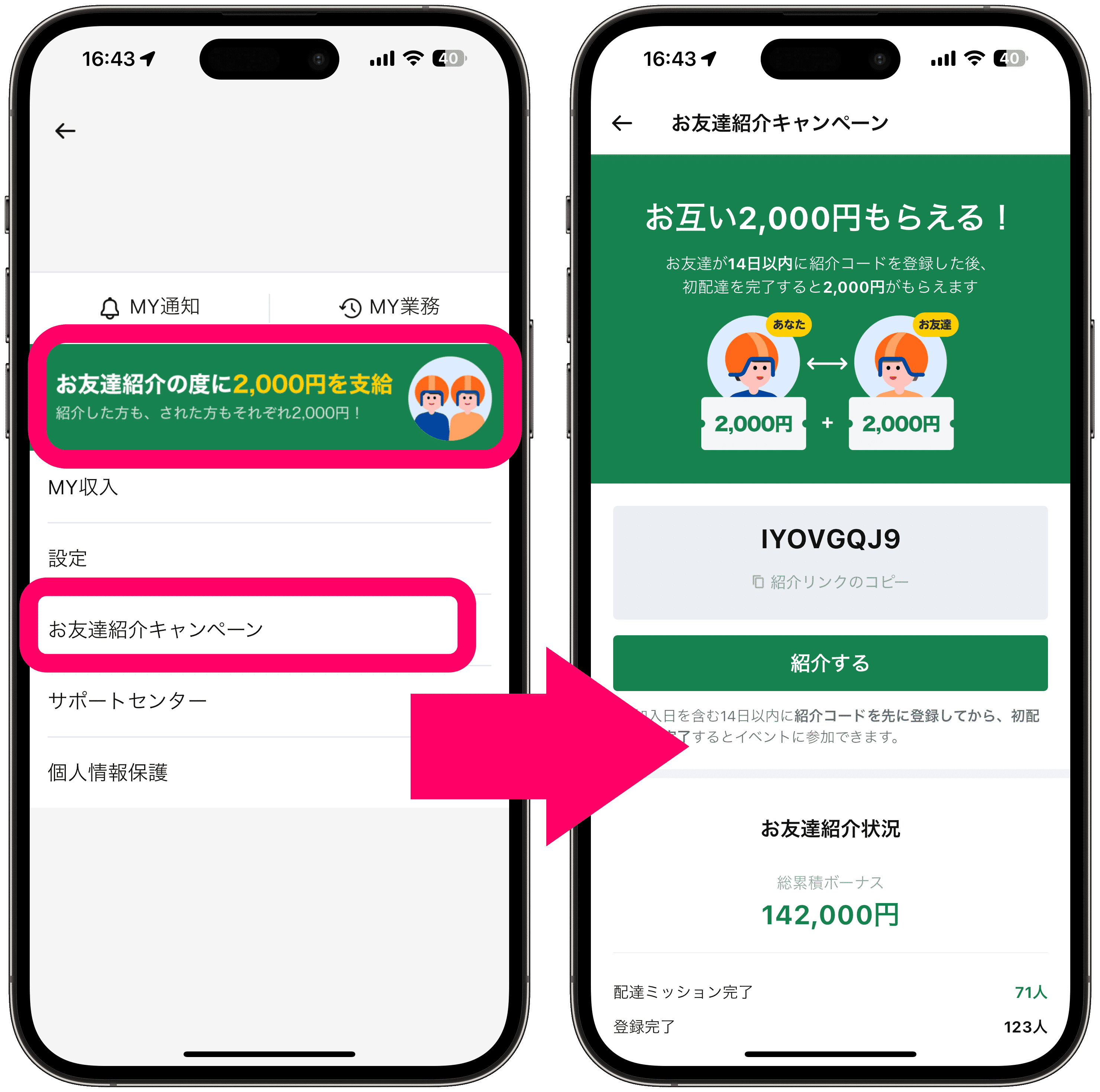 紹介コードで注文者は5000円!配達員は4000円!