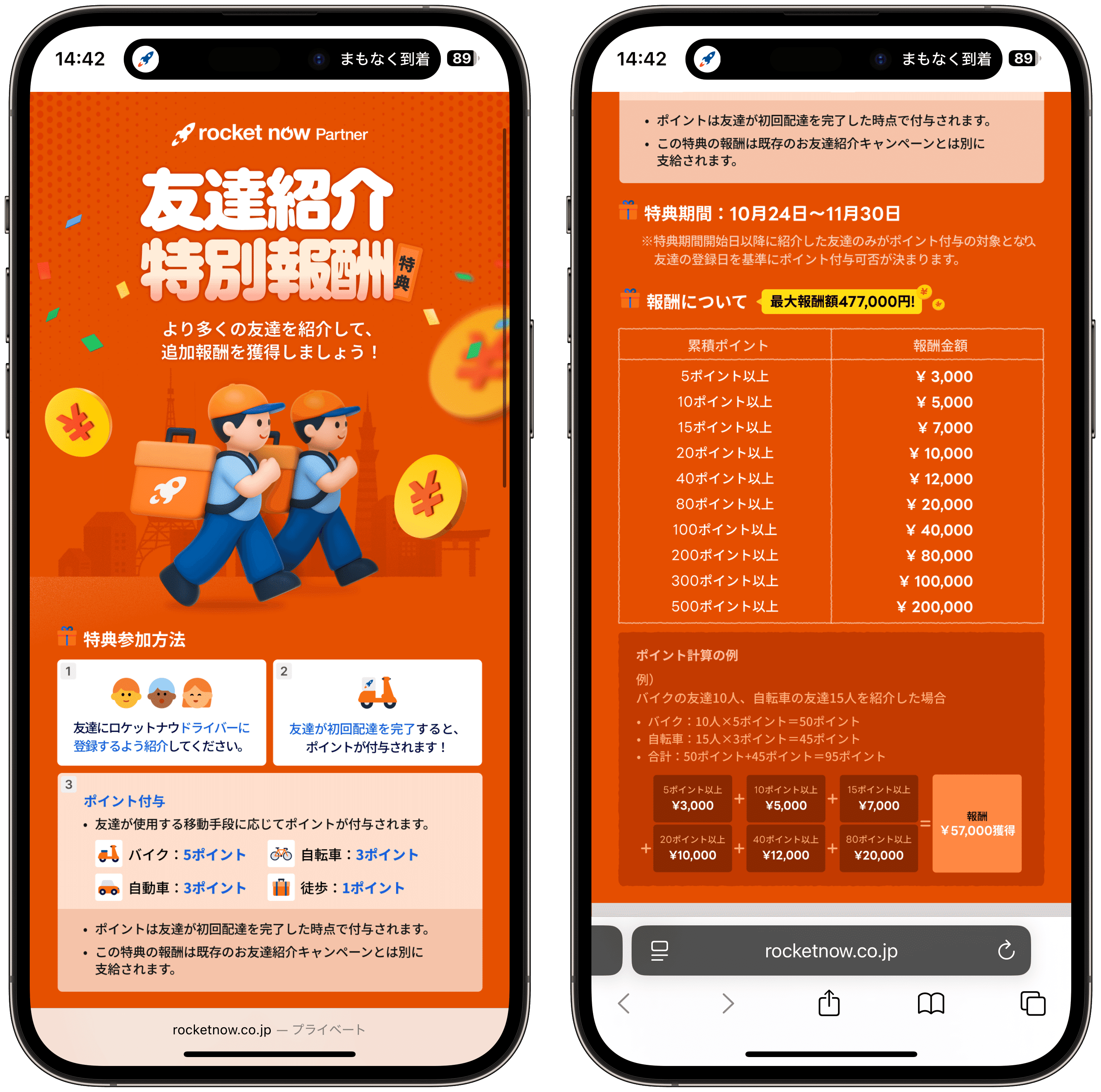 ロケットナウでは、配達員の紹介キャンペーンを実施しています。