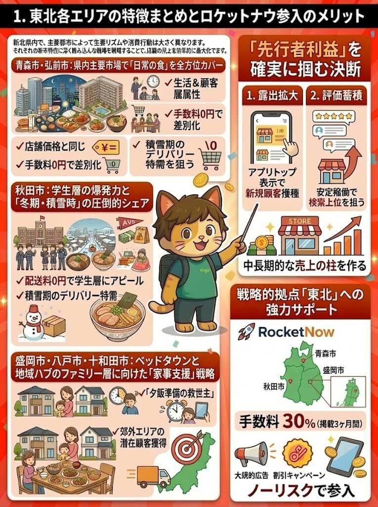 青森・秋田・岩手エリアのデリバリー需要とロケットナウ参入のメリット